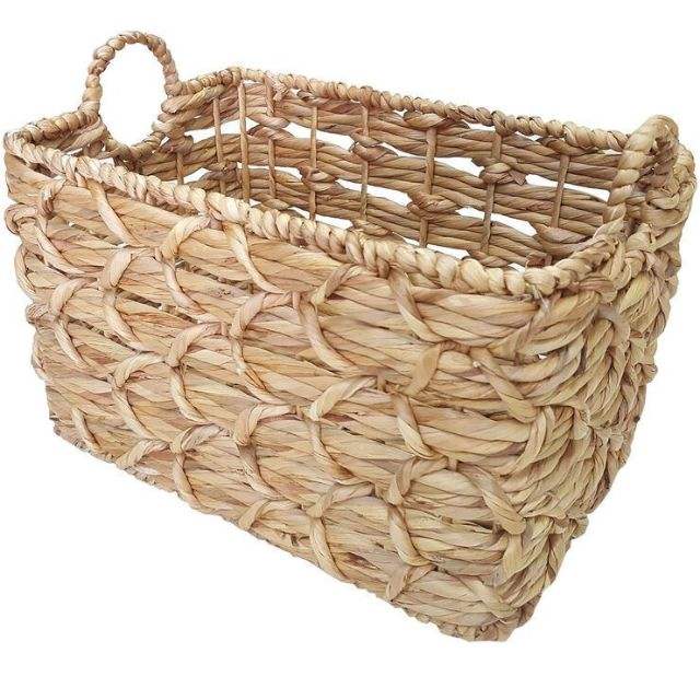Handwoven Natural Hyacinth Wicker Utility Basket Rustic Style Kitchen Storage for Bathroom Use
