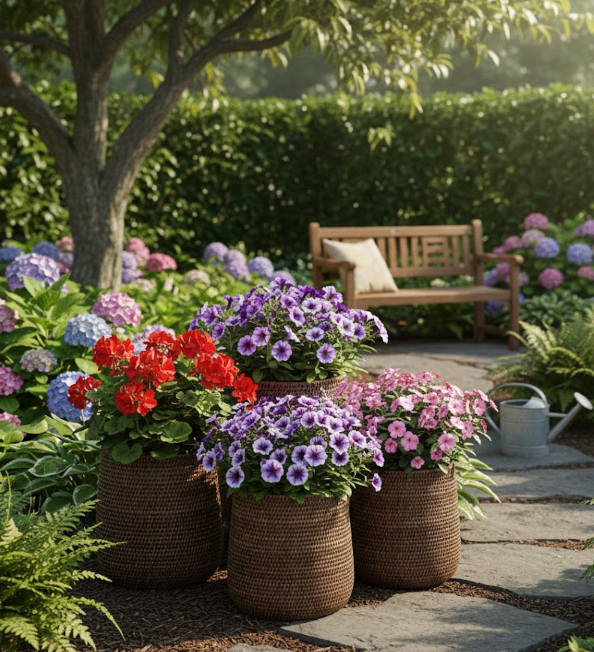 Handwoven Natural Rattan Planter Basket Tall Wicker Plant Pot for Indoor Living Room, Balcony, Outdoor Garden Decor from Vietnam