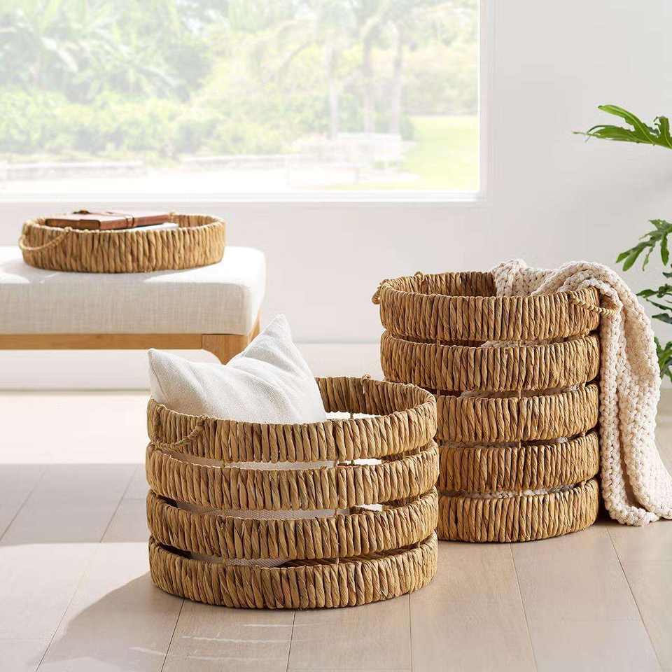 Handwoven Natural Seagrass Basket with Handles, Eco Friendly Woven Storage Basket for Home Organization, Laundry, Living Room