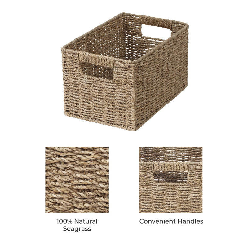 Handwoven Natural Seagrass Storage Baskets with Handles Water Hyacinth Organizers for Shelf Management (Medium 2-Pack)