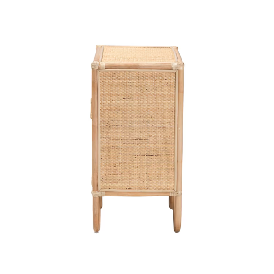 Vintage Rattan Nightstand 2-tier Storage Drawers
