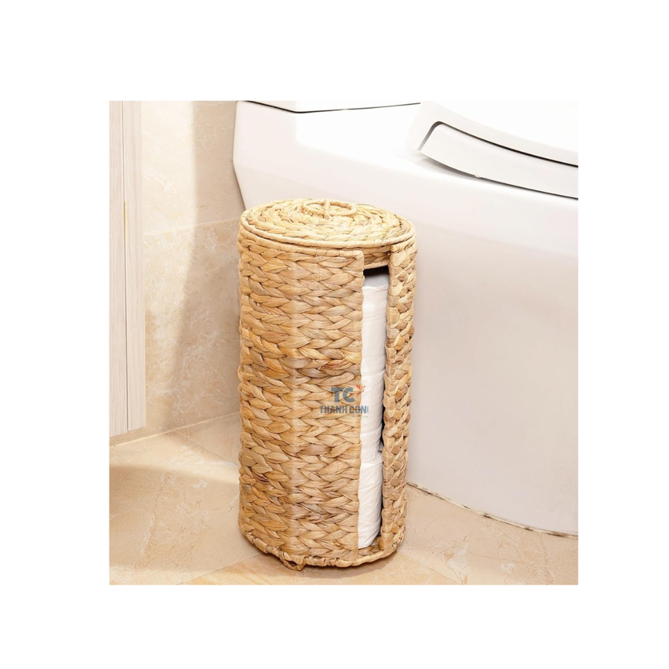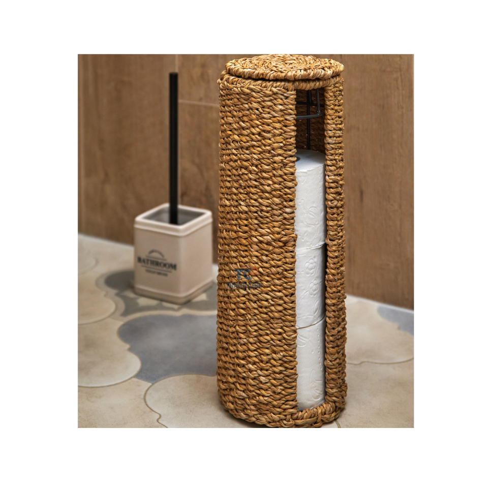 Handwoven Natural Water Hyacinth Toilet Paper Holder with Magazine Basket Bathroom Accessories and Ornament From Vietnams