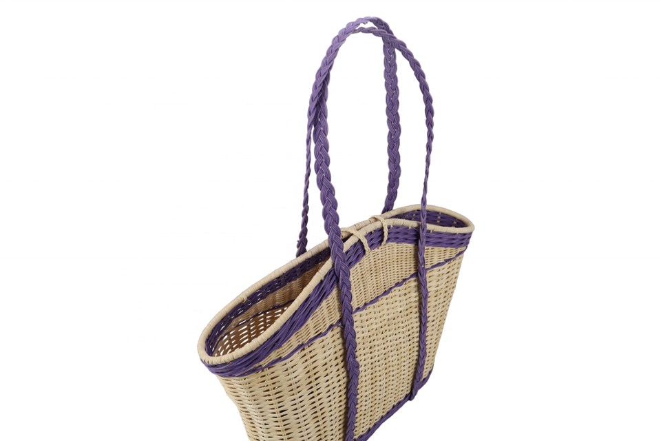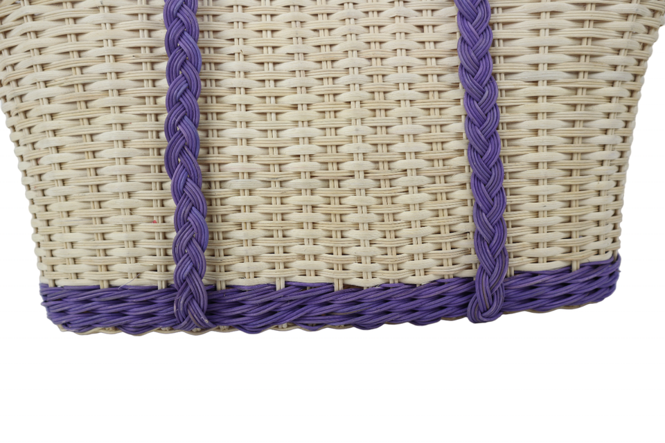 Handwoven Oval Wicker Tote Bag - Two-Tone Purple & Natural Boat Shape Shoulder Bag for Summer & Casual