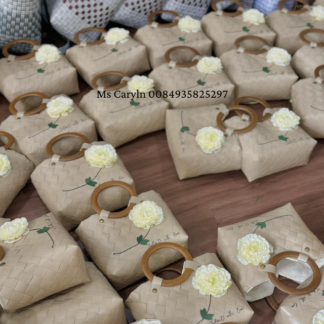 Handwoven Plastic Basket Bag With Leather Handle Vietnamese Supplier Handicraft Products - Caryln 0084935825297WA