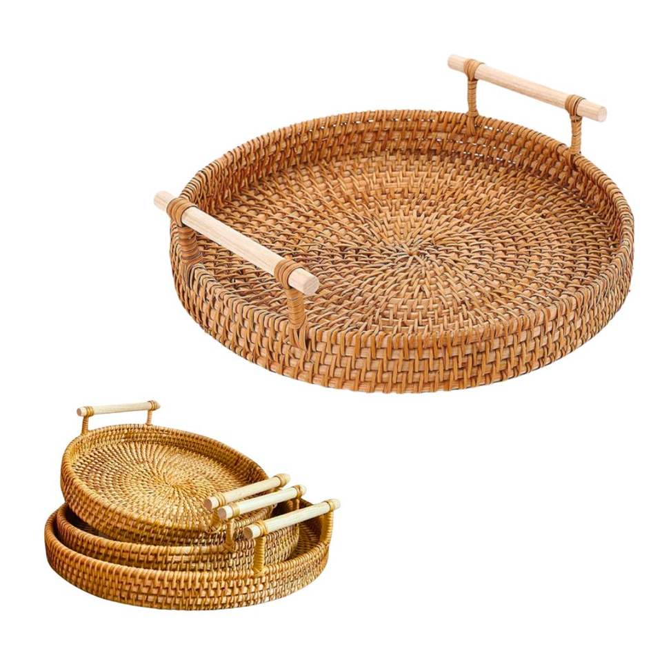 Handwoven RATTAN TRAY FRUIT STORAGE BASKET with Handles Gift, Home Decor, Sustainable Serving Tray for Home & Restaurant