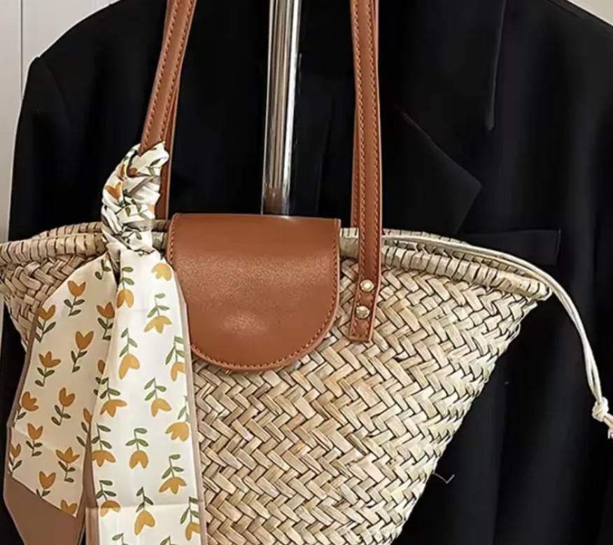 Handwoven Raffia Beach Bag Boho Summer Straw Handbag