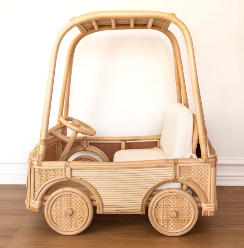 Handwoven Rattan Buggy Car Natural Material Decorative Sustainable Handmade Furniture Piece Wholesale from Vietnam