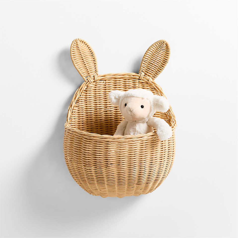 Handwoven Rattan Bunny Wall Storage Basket Eco-Friendly Natural Fiber Decorative Organizer for Nursery & Kids Room
