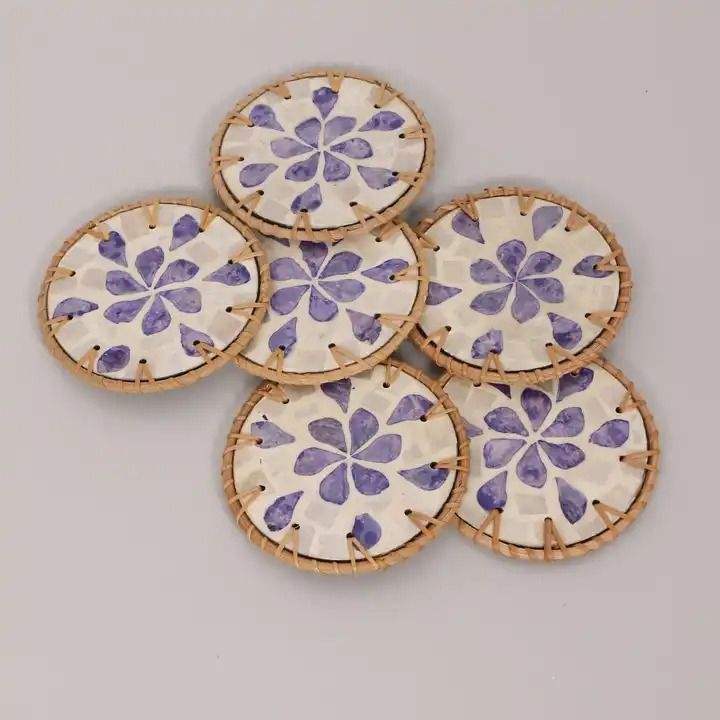 Handwoven Rattan Coasters Heat Resistant - Modern Style Natural Fiber Drink Coasters for Table Decor Luxury Coasters Set