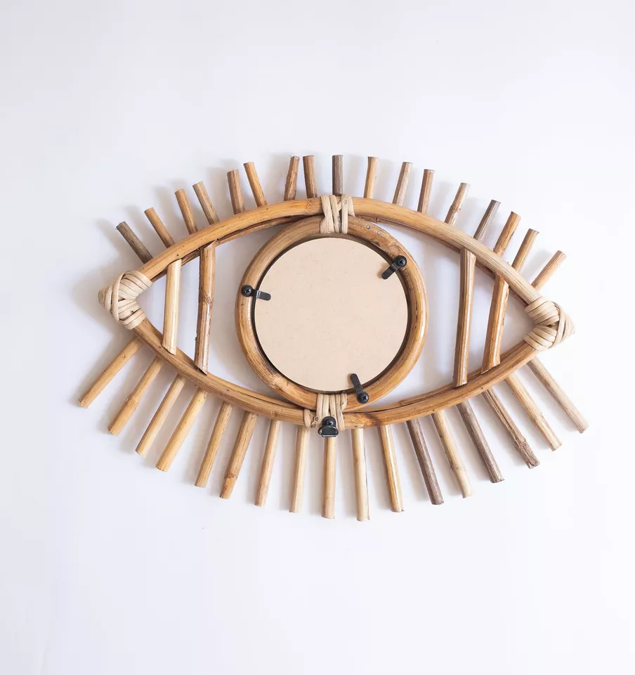 Handwoven Rattan Evil Eye Mirror - Unique Wall Decor for Home and Meditation Space