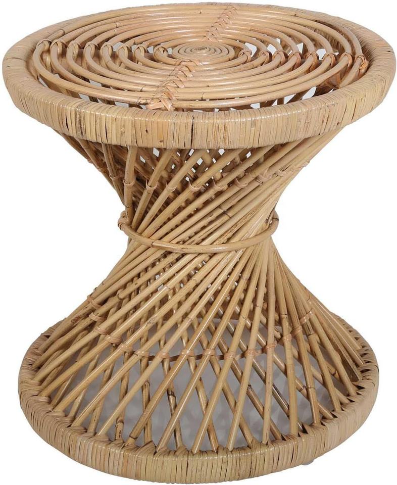 Handwoven Rattan Hourglass Side Table - Vintage Wicker Tea Coffee Table Stool & Boho Home Furniture for Living Room