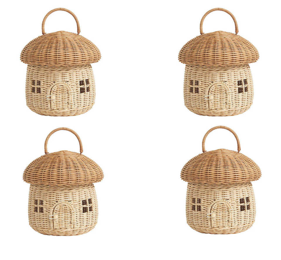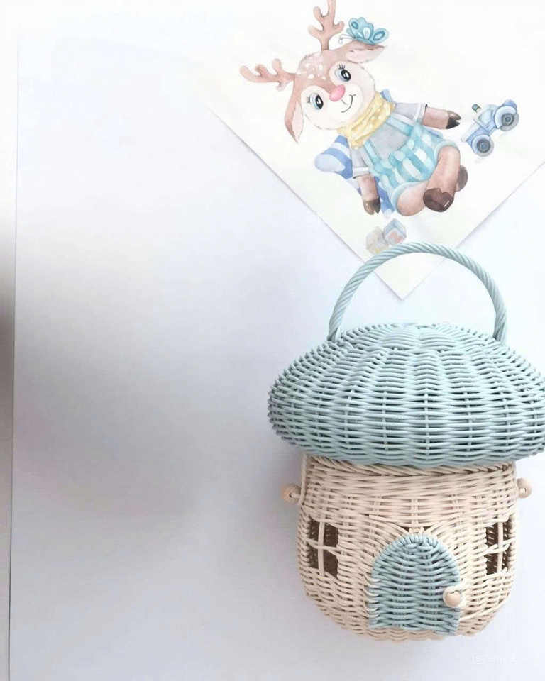 Handwoven Rattan Kids Basket Bag, Cute House Shape Storage Basket with Handle for Toy Storage and Home Decoration