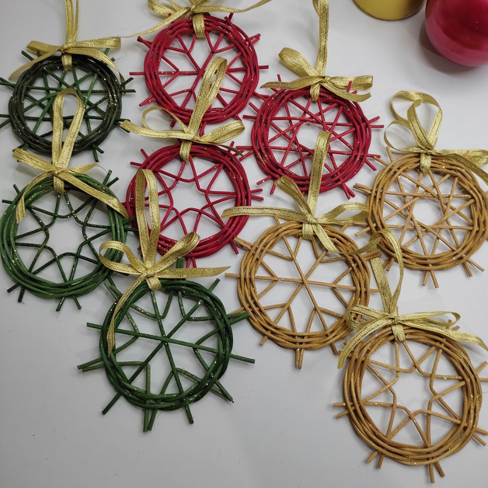 Handwoven Rattan / Natural Fiber Christmas Ornaments for Christmas Tree Decor