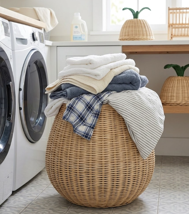 Handwoven Rattan Pear Shaped Storage Basket with Lid, Natural Wicker Decorative Organizer for Laundry, Toys, Home Decor & Living