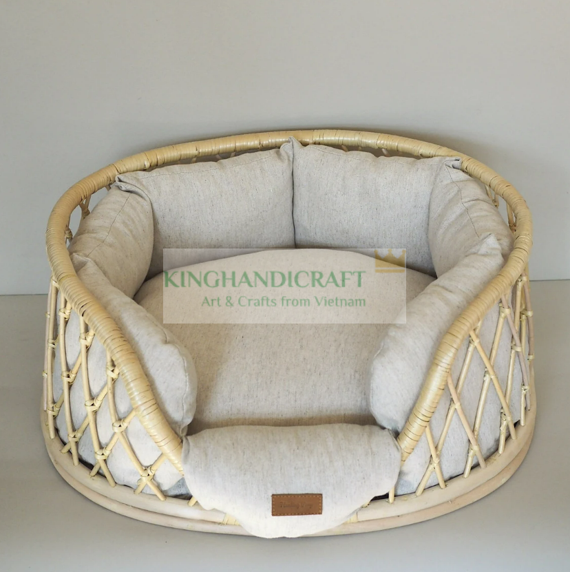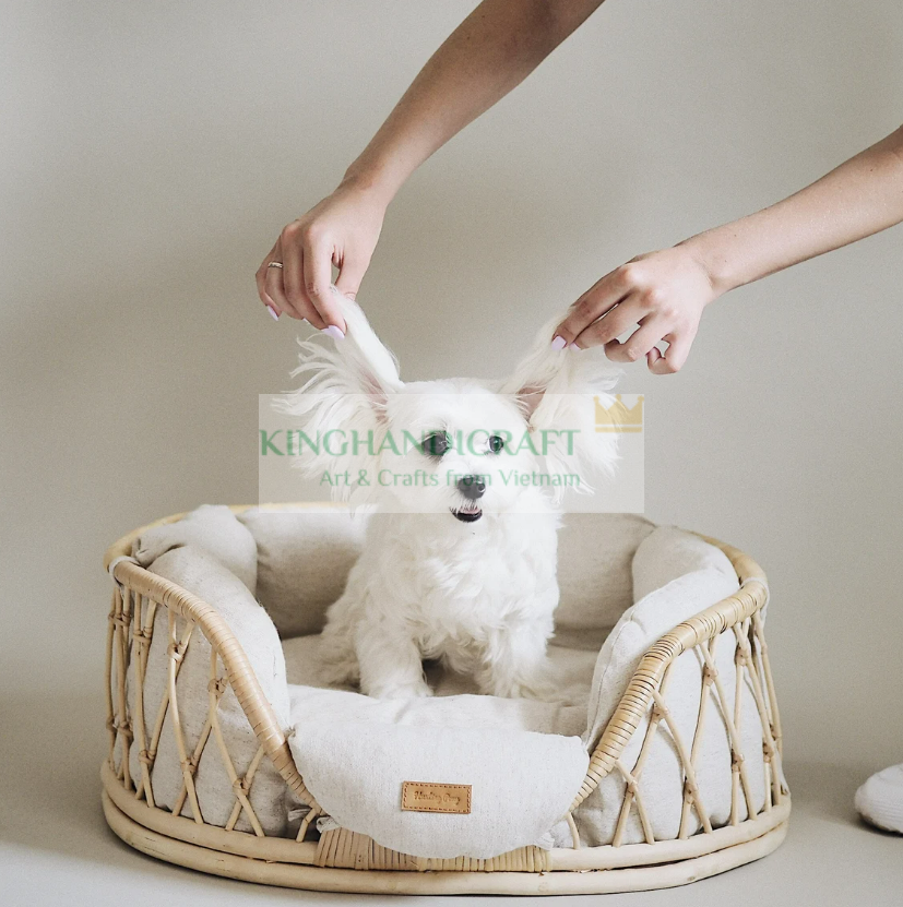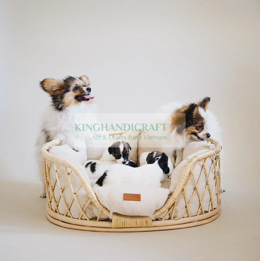Handwoven Rattan Pet Furniture Accessories Vintage Style Pet Ped Sleeping House Compatible for Medium to Large Dog Wholesale