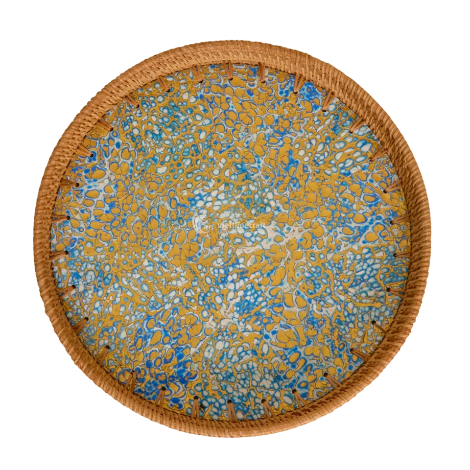 Handwoven Rattan Serving Tray with Colorful Mosaic Base Vietnam Wholesale
