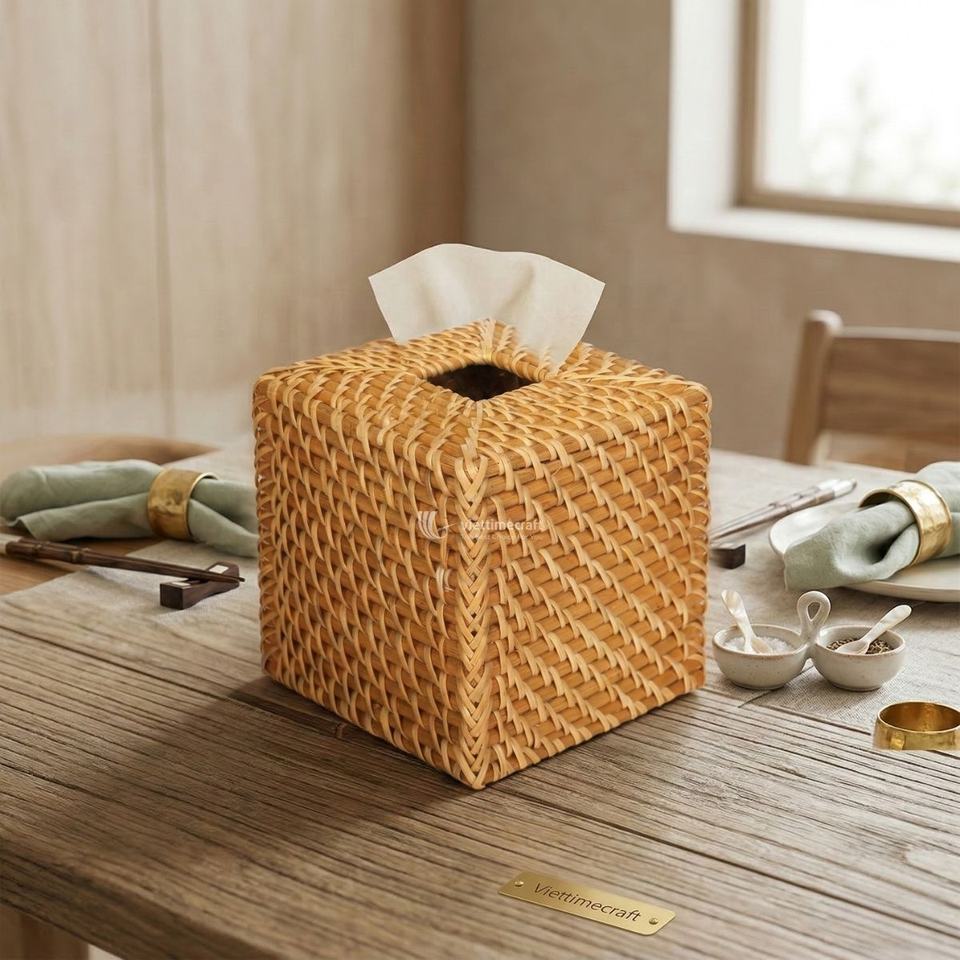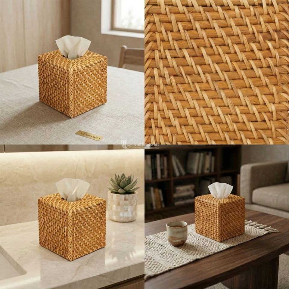 Handwoven Rattan Tissue Box Cover with Custom Logo, Wicker Tissue Holder for Tabletop, Kitchen and Home Decor Wholesale Vietnam