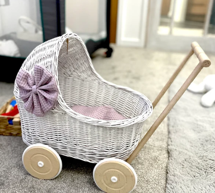 Handwoven Rattan Wicker Baby Walker Doll Wicker Stroller Buggy Carriage Basket Crib for Doll Teddies Baby Stroller Wholesale