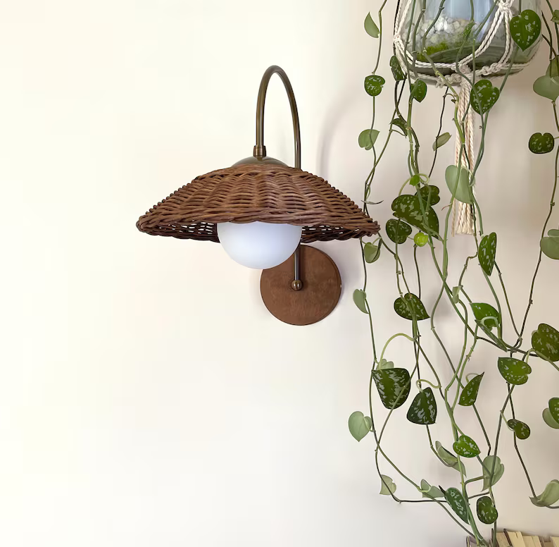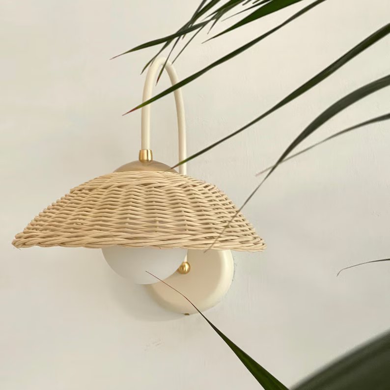 Handwoven Rattan and Bamboo Wall Lamp - Vintage-Style Sconce for Warm and Subtle Lighting