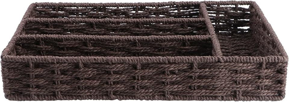 Handwoven Rectangular Paper Straw Organizer Basket, Sustainable Desktop Storage for Home & Office