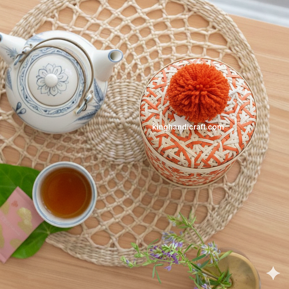 Handwoven Eco-Friendly Modern Round Bamboo Storage Box with Lid | Unique Ramadan Eid Gift Basket for Dry Food & Chocolates