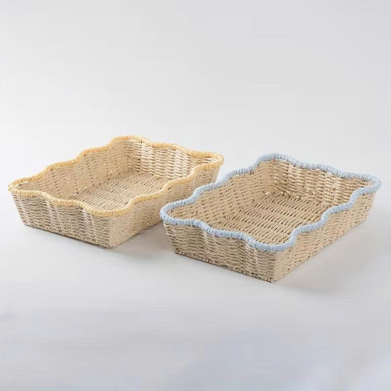 Handwoven Scalloped Storage Basket Desktop Organizer Paper Rope Material Storage Decorative Tray For Home Decoration Living Room
