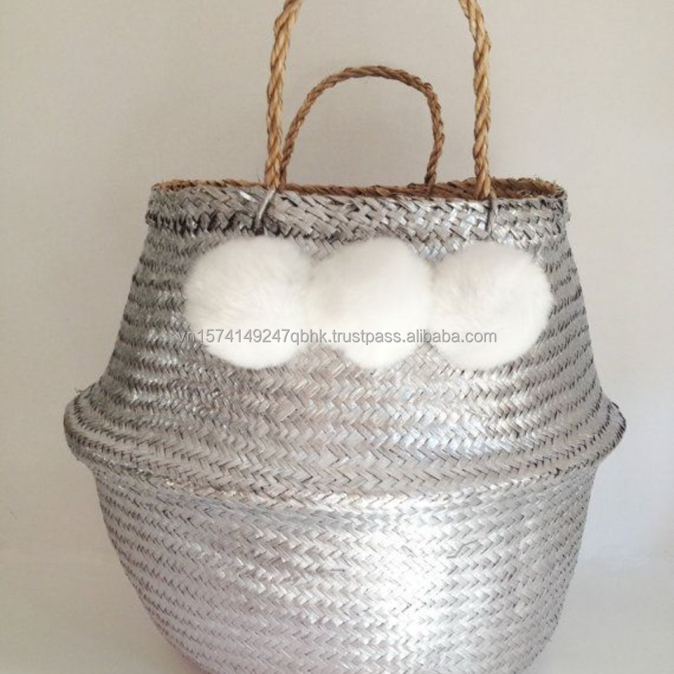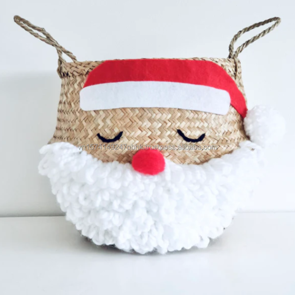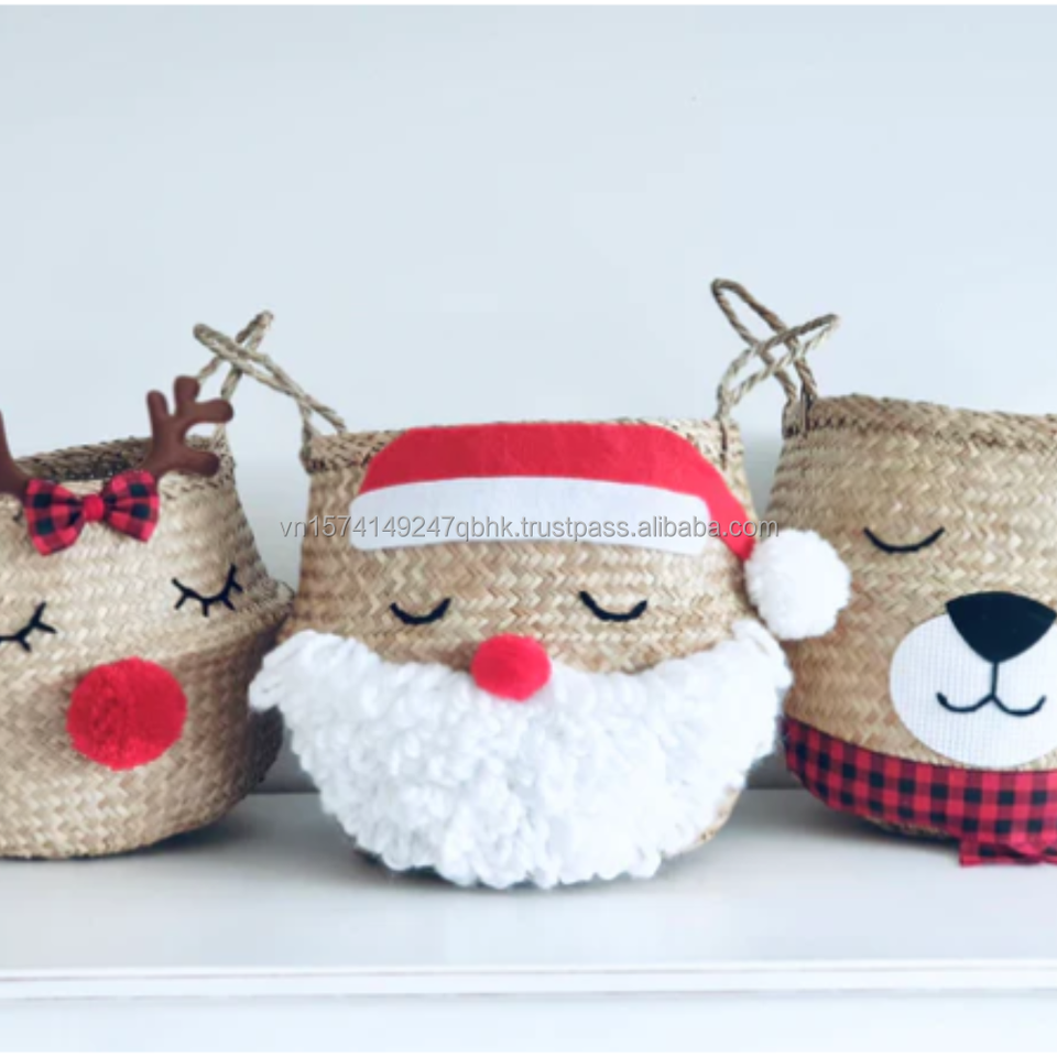 Handwoven Seagrass Belly Basket Christmas Storage Organizer For Gifts Home Decor Foldable Natural Boho Basket With Handles