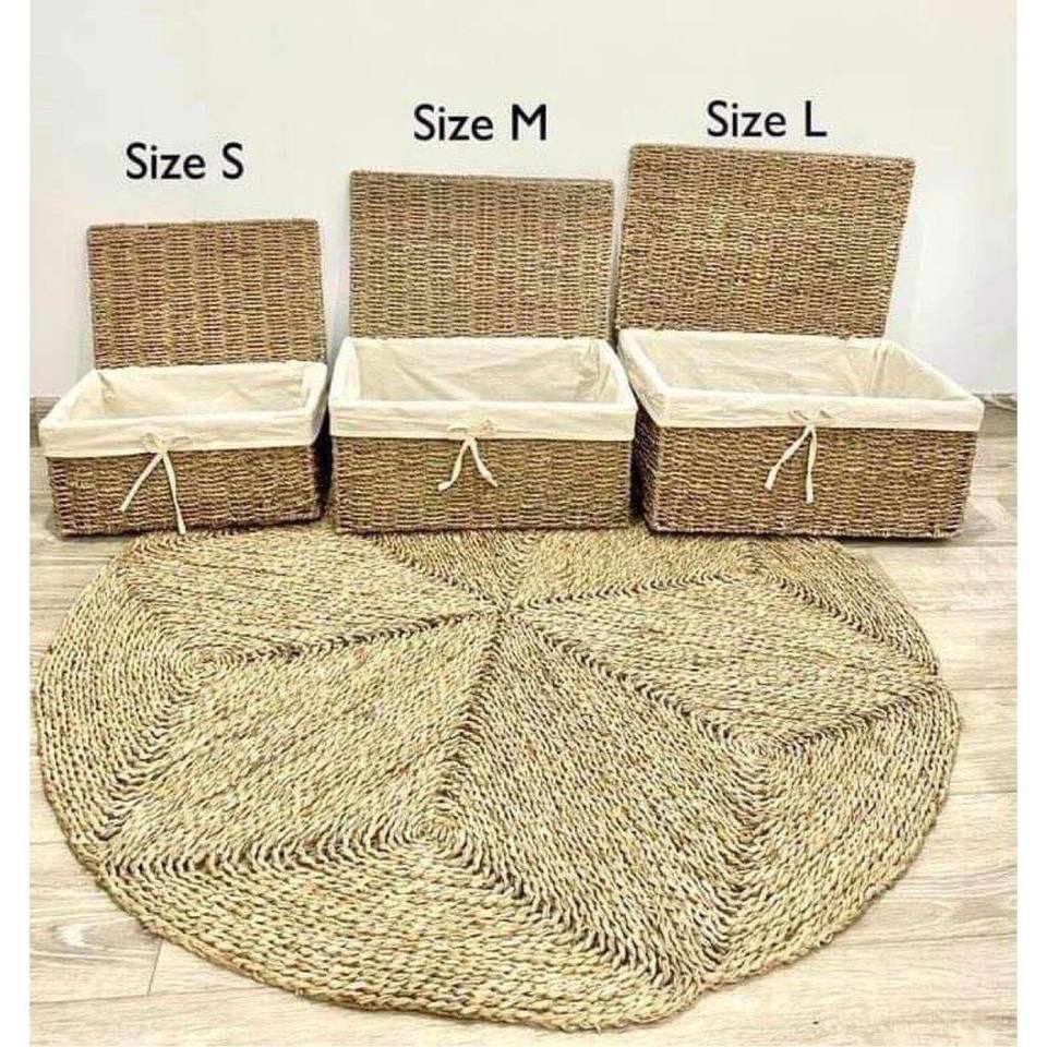 Handwoven Seagrass Rectangle Shape Simple Design Multipurpose Storage Basket Handle Eco-Friendly Organizing Solution Tidy Home