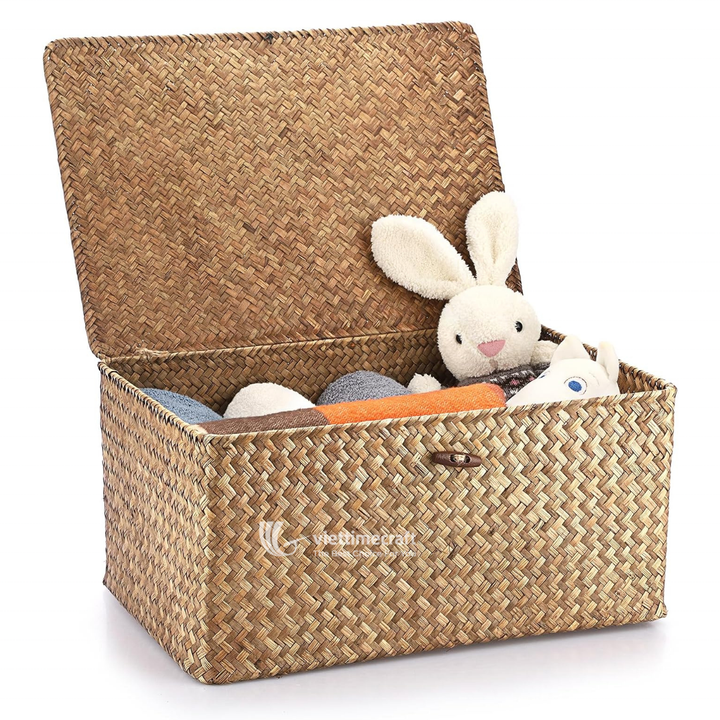 Handwoven Seagrass Rectangular Wicker Chest with Lid for Home Organization