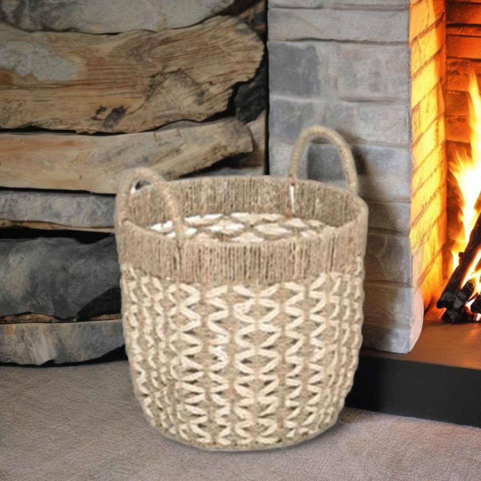 Handwoven Seagrass Storage Basket with Palm Leaf Rustic Farmhouse Style