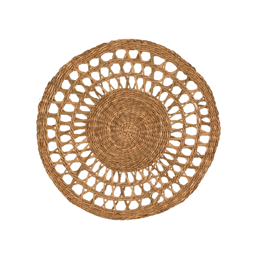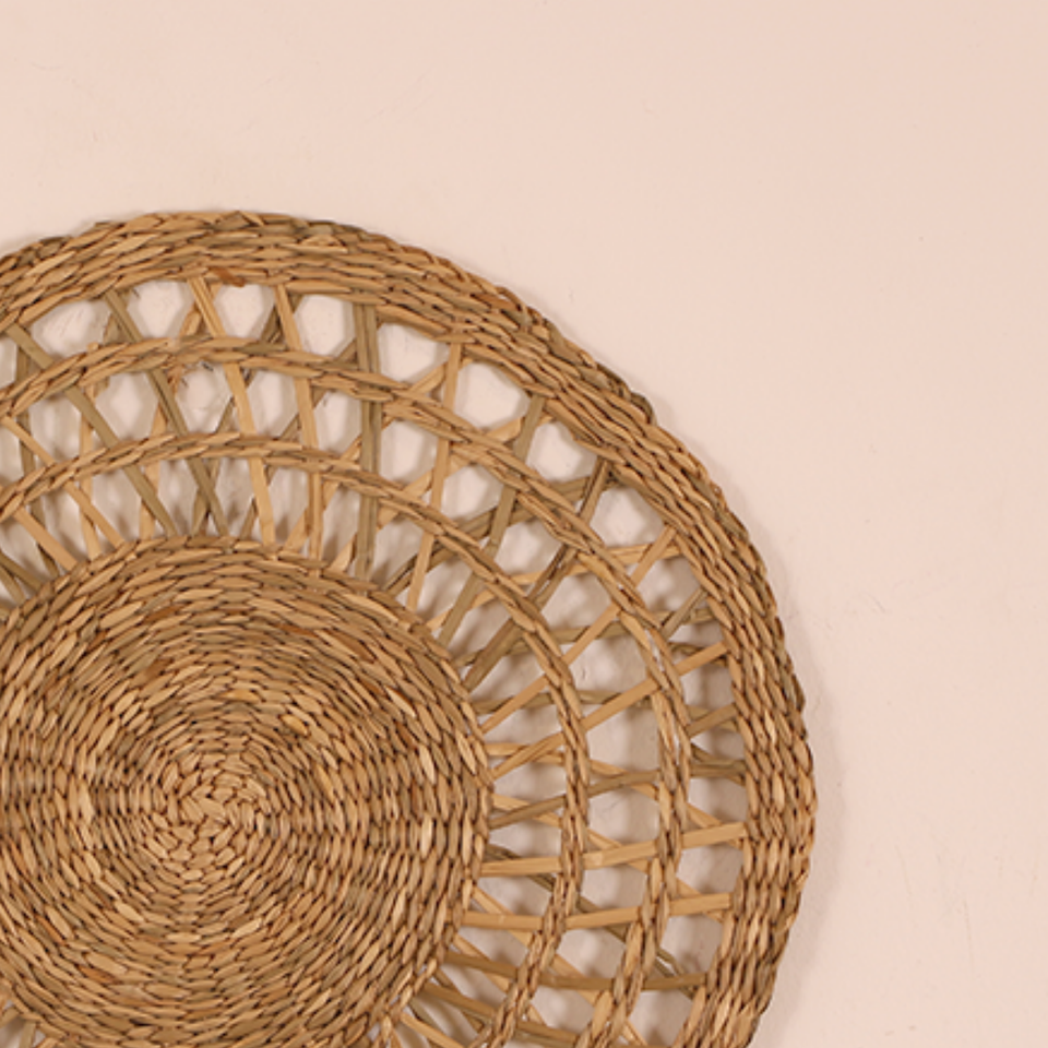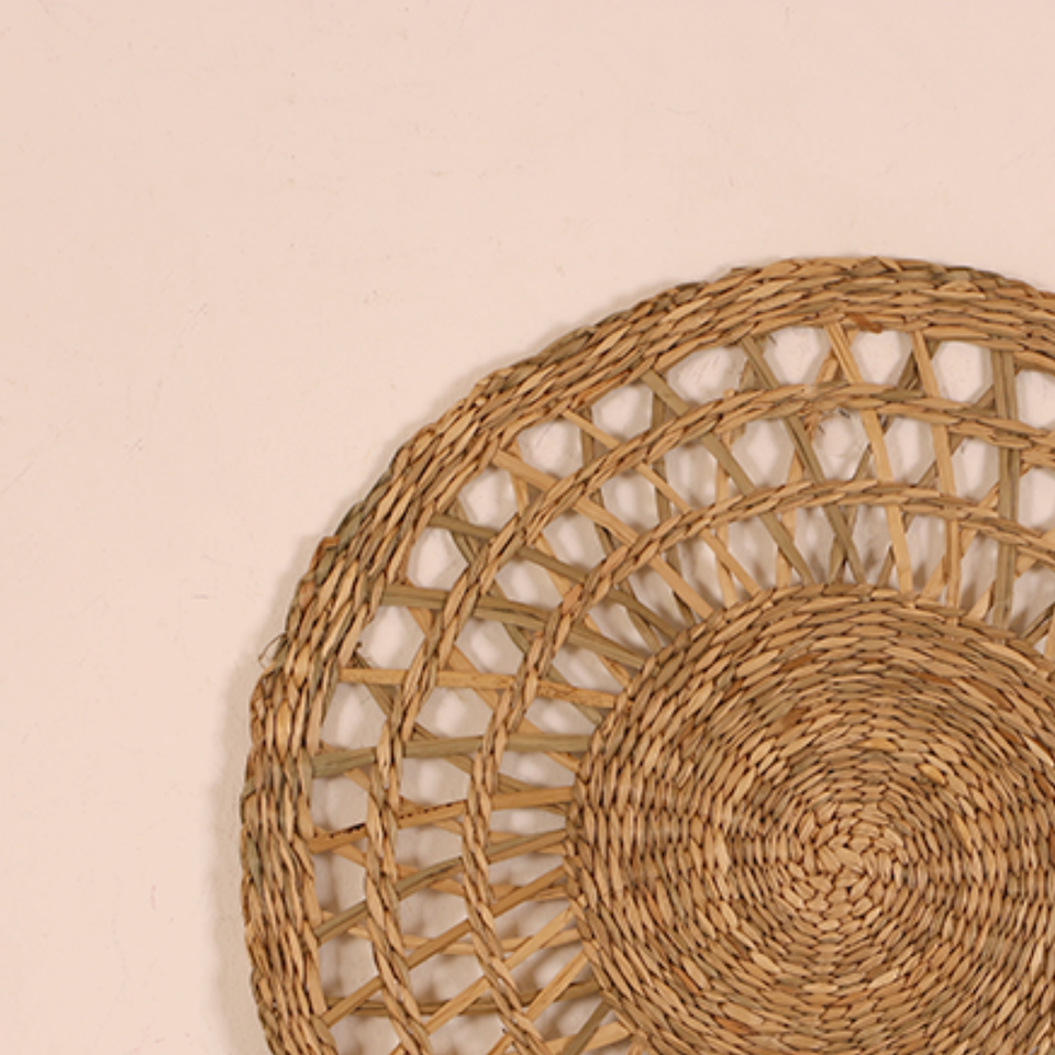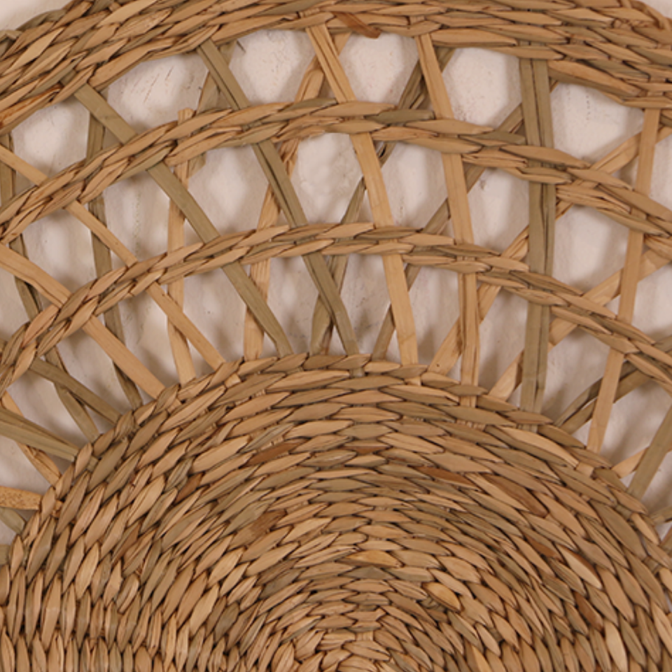 Handwoven Seagrass Wall Decor Natural Beige Open Weave Round Wall Art Home Decor Wholesale For Rustic Bohemian Interior Design