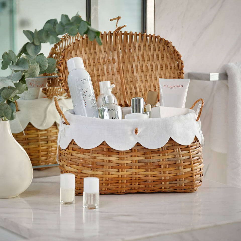 Handwoven Small Rattan Laundry Basket Nesting Baskets With Scalloped Liner for Home Organizing and Bathroom Storage Customized