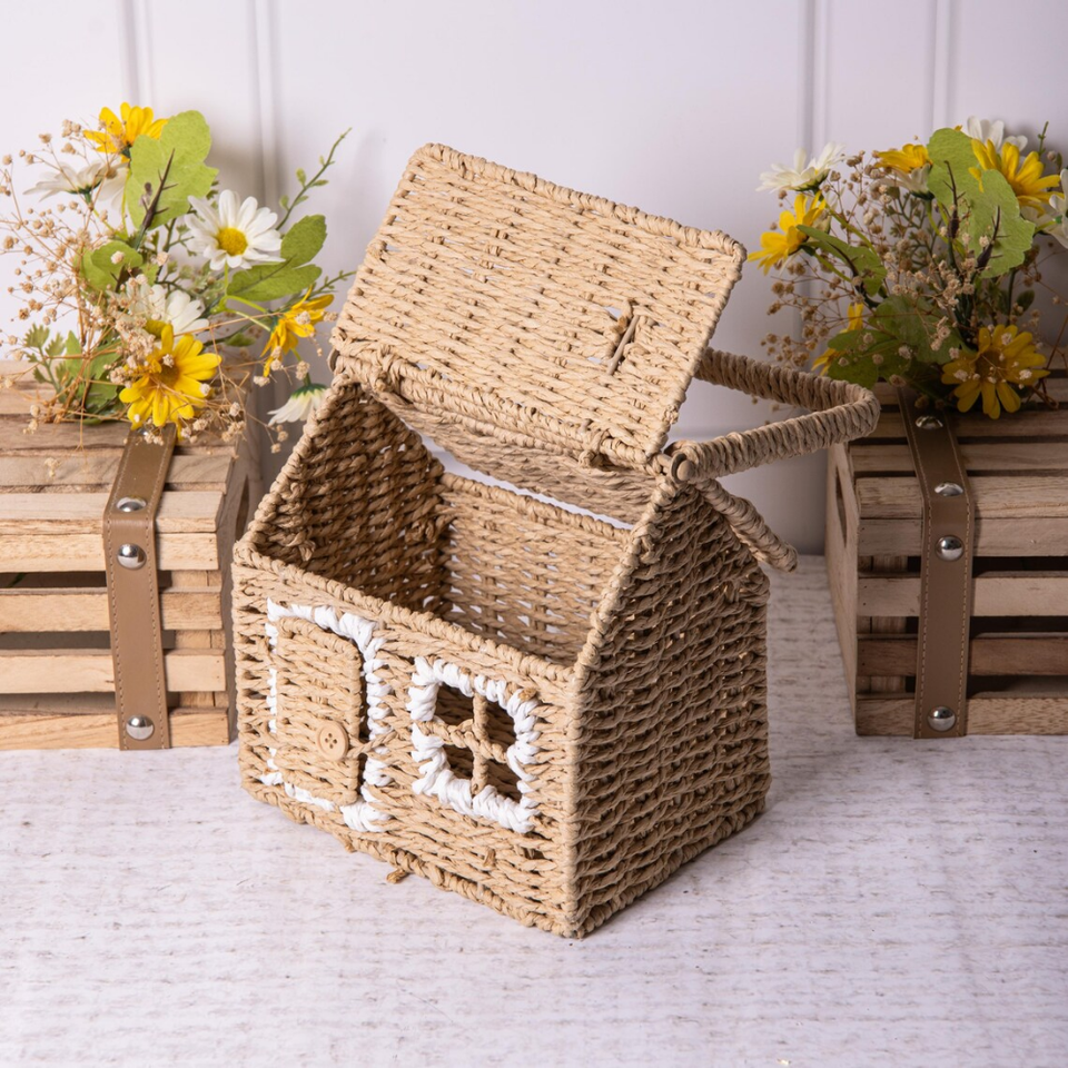 Handwoven Straw House-Shaped Bag with Top Handle
