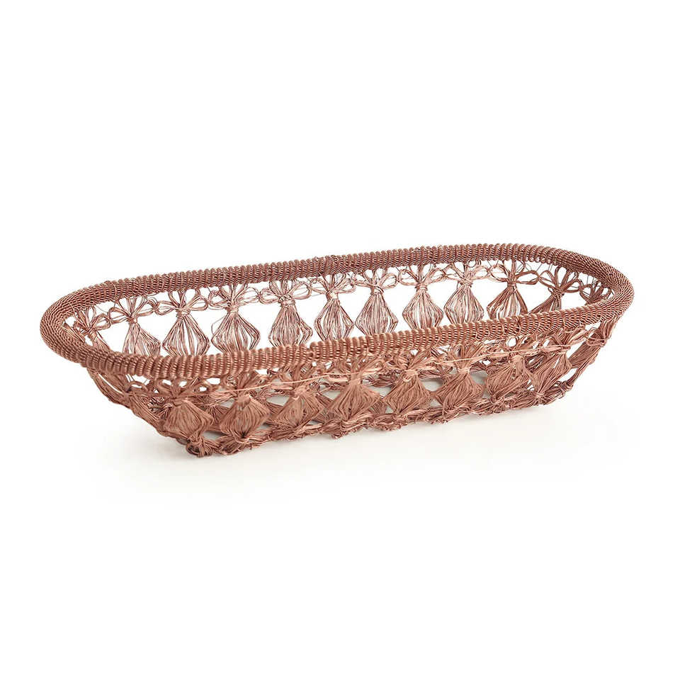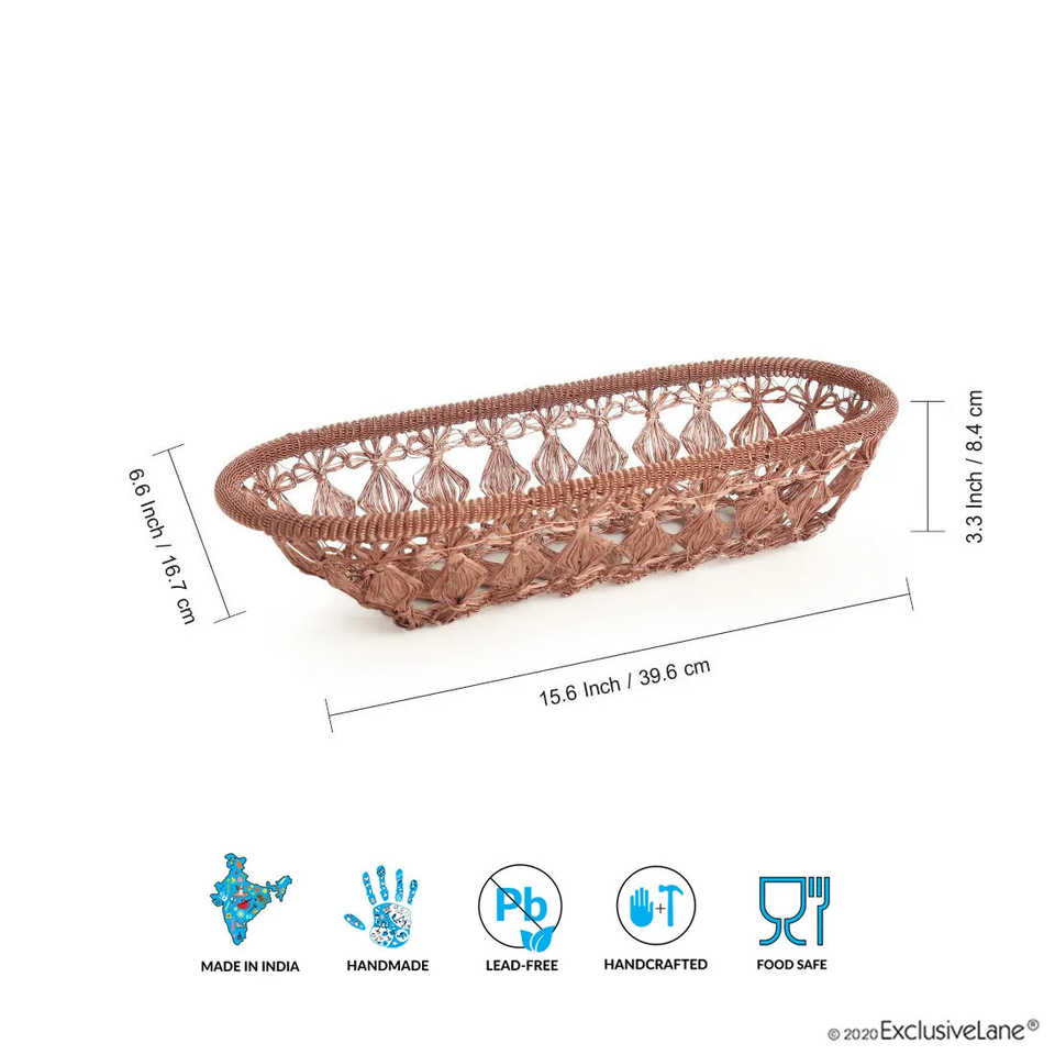 Handwoven 'The Knotted Mesh' Fruit Basket Iron with Copper Finish Elegant Metal Design
