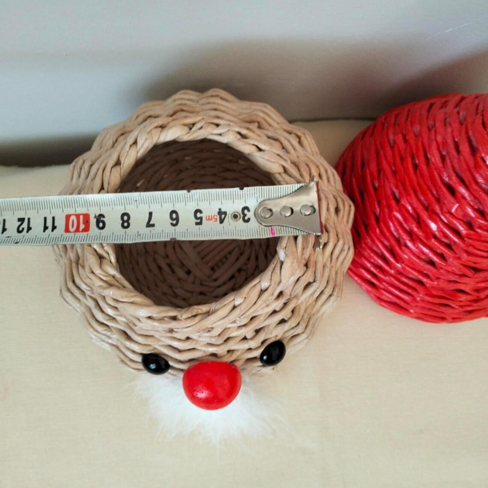 Handwoven Two-Piece Santa Claus Figurine / Christmas Storage Basket (Customizable Hat) for Holiday Decor & Candy Treats