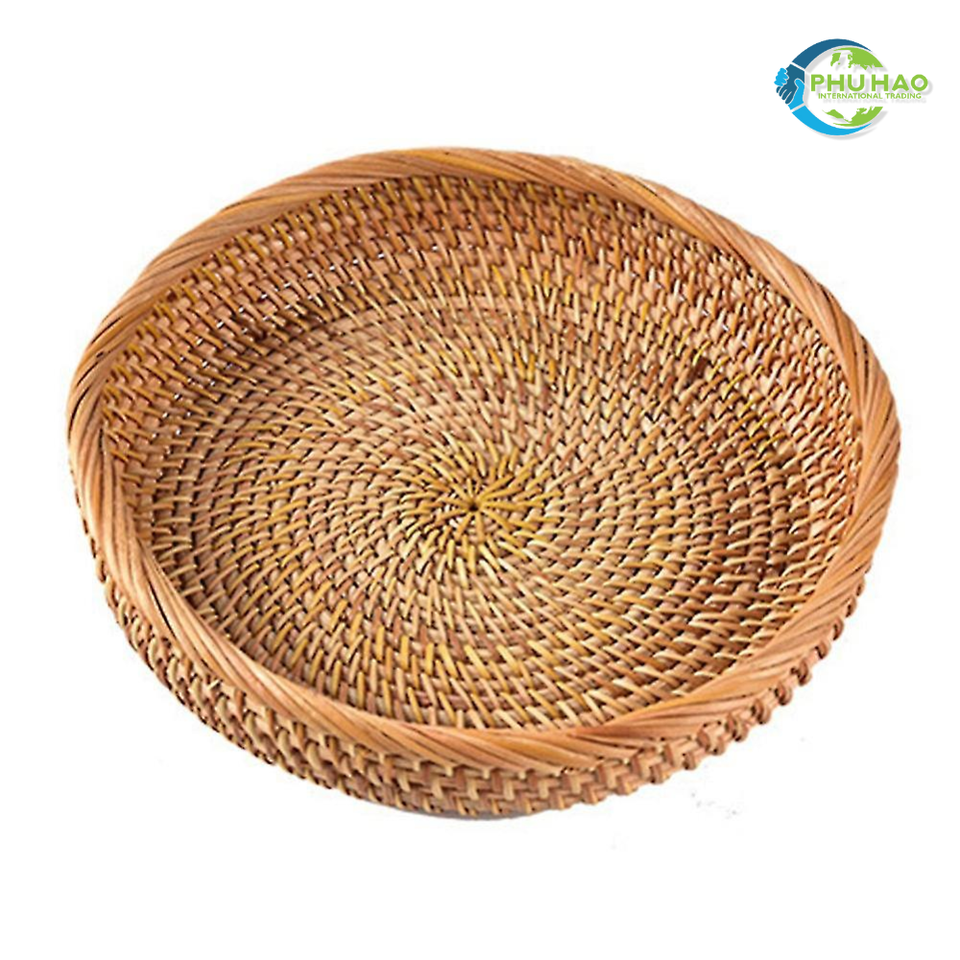 Handwoven WOVEN RATTAN FRUIT STORAGE BASKET From Vietnam Food Tray Bread Basket Ideal for Tea Time, Breakfast, and Parties