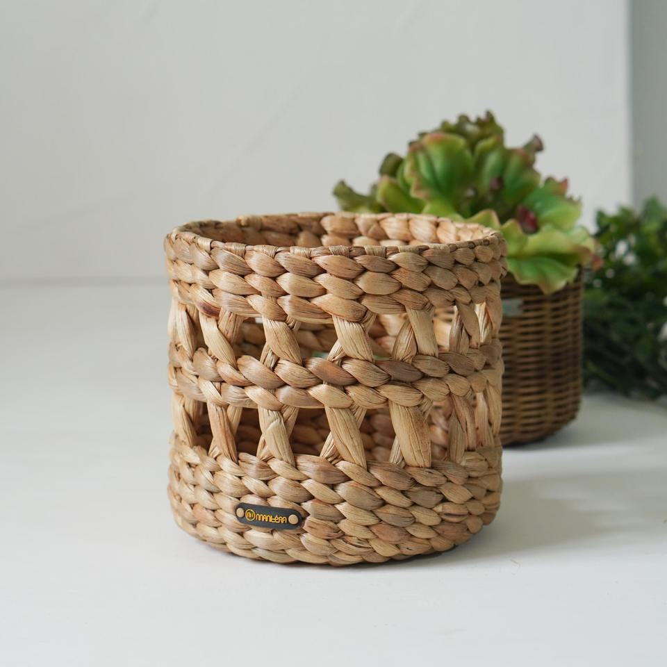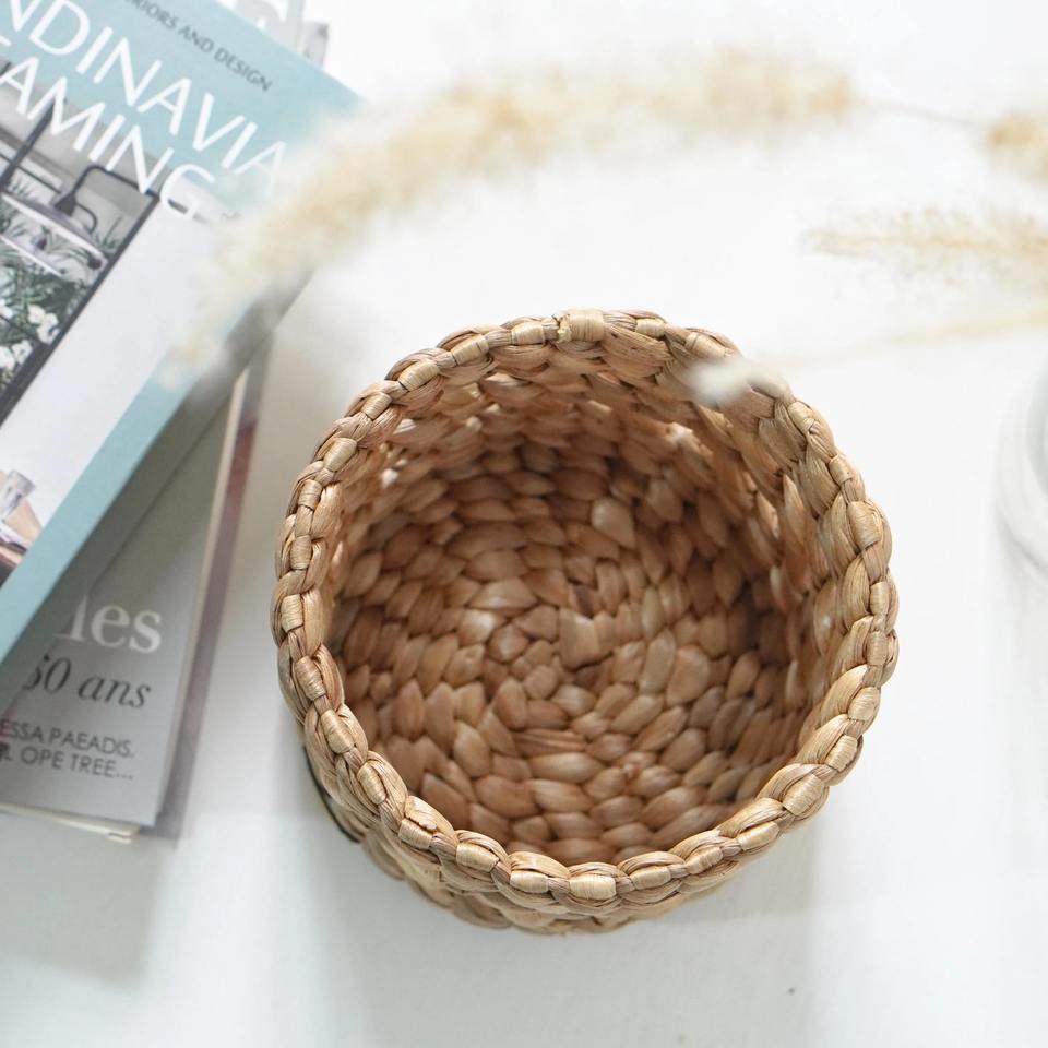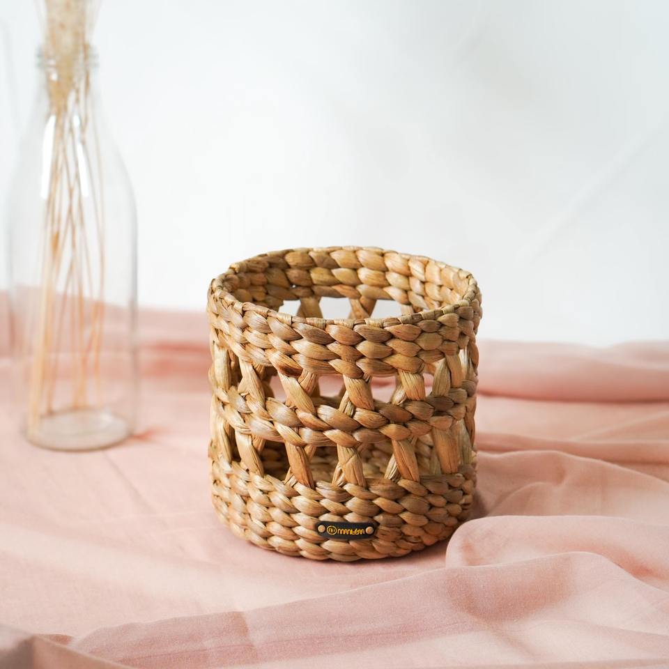 Handwoven Water Hyacinth Desk Organizer:Size: D6,3 x H6,3 inch