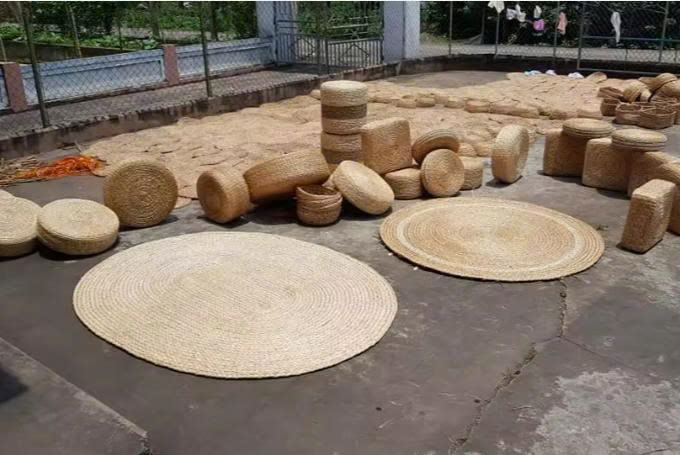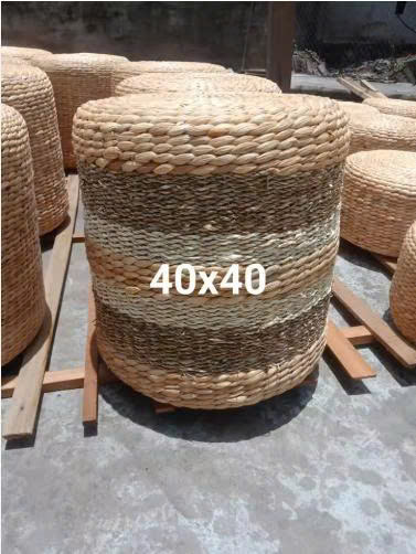 Handwoven Water Hyacinth Floor Cushion Braided Ottoman Stool Round Design