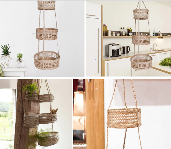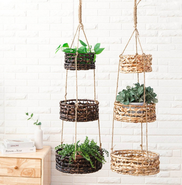 Handwoven Water Hyacinth Hanging Basket Natural Wicker Wall Planter and Storage for Home, Garden, or Decor Display