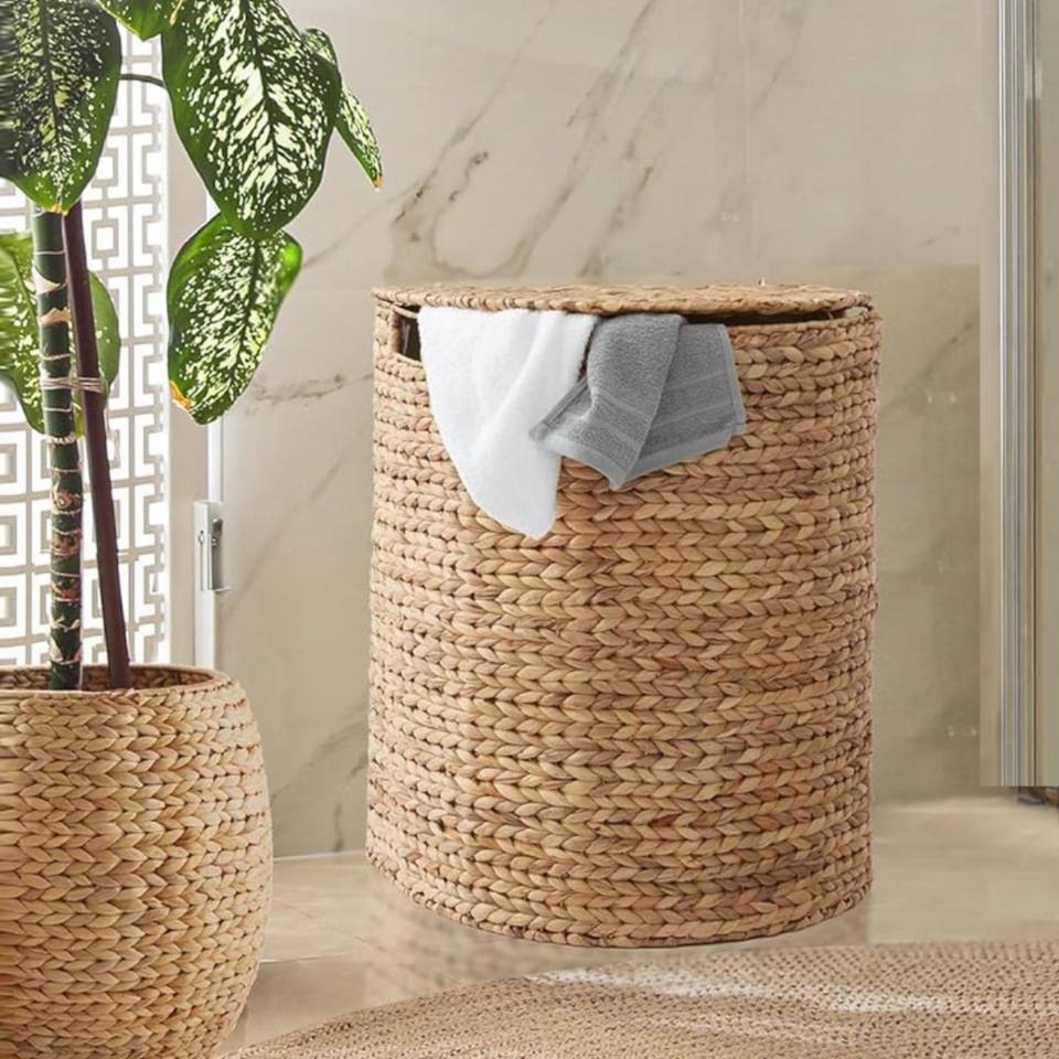 Product name:Handwoven Water Hyacinth Laundry Basket with Lid Clothes Hamper