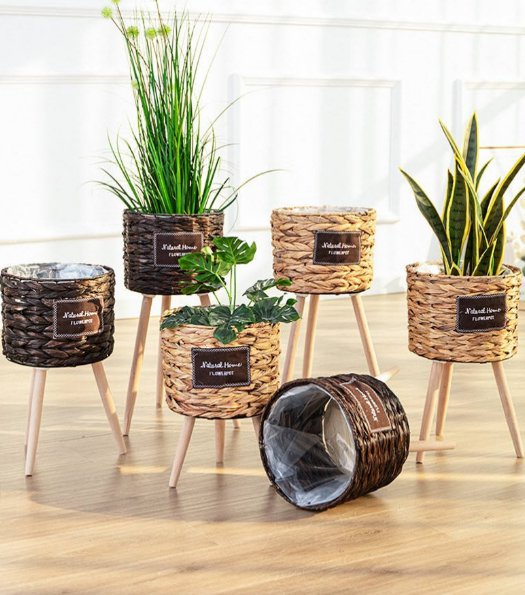 Handwoven Eco-Friendly Water Hyacinth Planter Natural Wicker Storage Basket for Indoor Decor and Garden Use