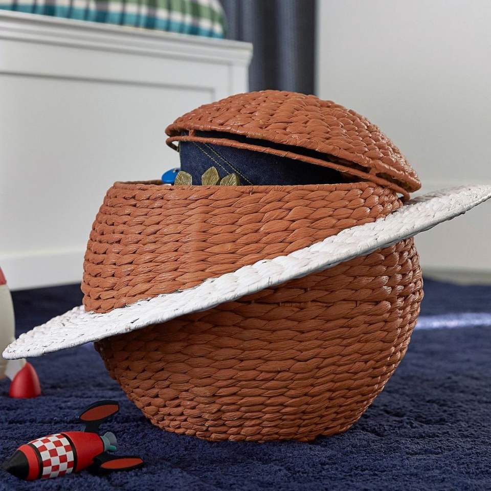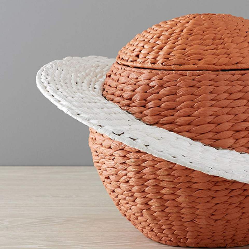 Handwoven Water Hyacinth Saturn Shape Storage Basket with Lid Natural Woven Planet Decorative Organizer
