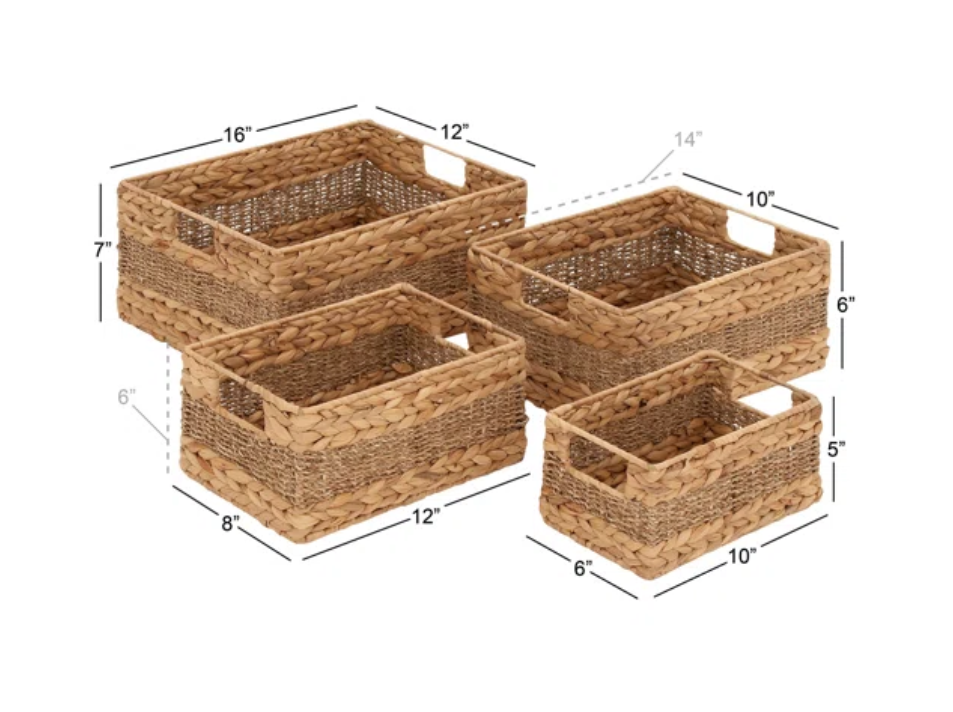 Handwoven Water Hyacinth&Seagrass Rectangle Vietnam Basket for Stylish Storage Laundry Organization and Eco-Friendly Home Decor