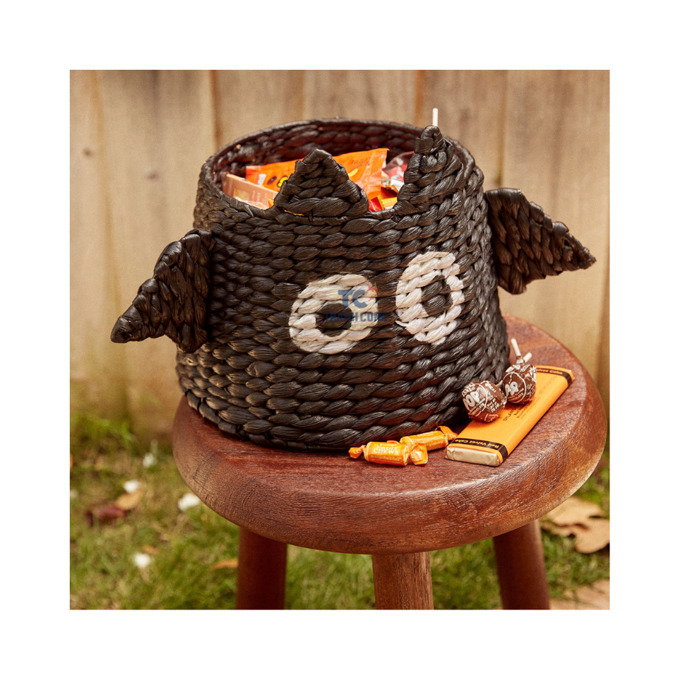 Handwoven Water Hyacinth Storage Baskets Halloween Baskets Ed Emberley Bat Candy Bowl for Halloween Decor for Holiday Gifts
