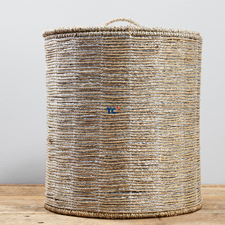 Handwoven Wicker Storage Basket Rattan Seagrass for Laundry or Fruit from Vietnam