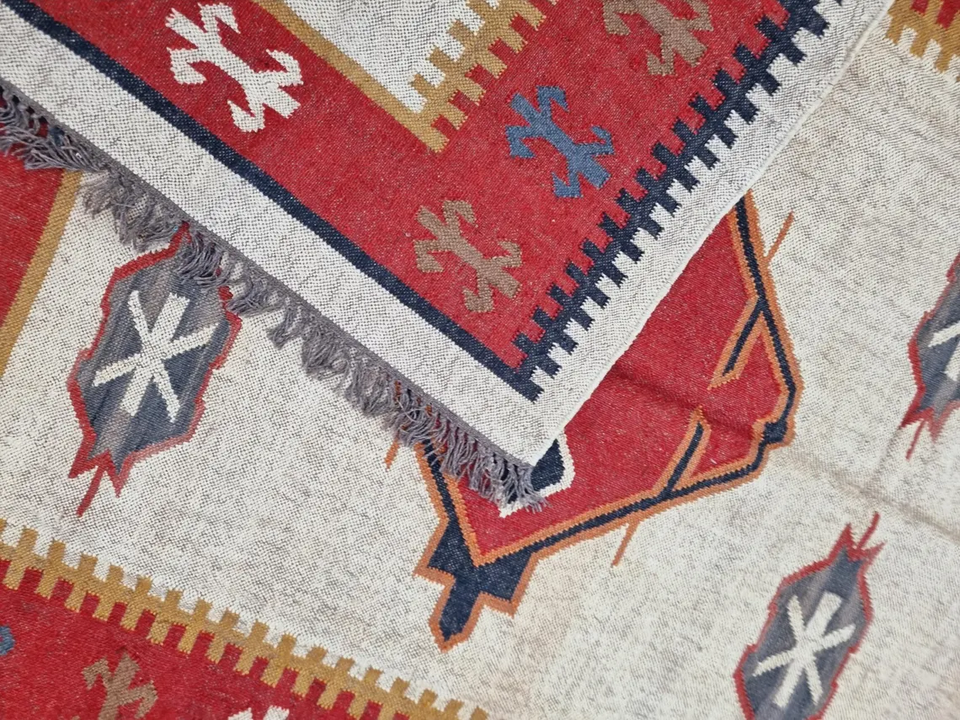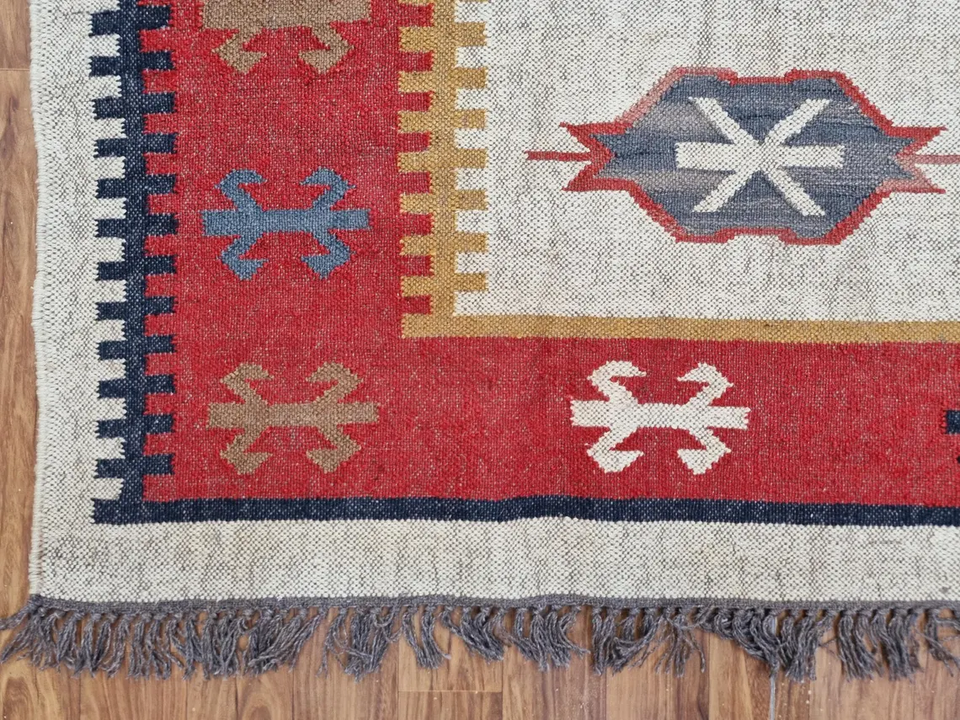Handwoven Wool Jute Kilim Rug Large Area Rug with High Pile Abstract Pattern for Living Room Bedroom Dining Room