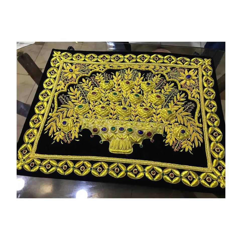 Handwoven Zari Jewel Carpet Exquisite Semi-Precious Stone Design for Opulent Home Decor Best Price Online