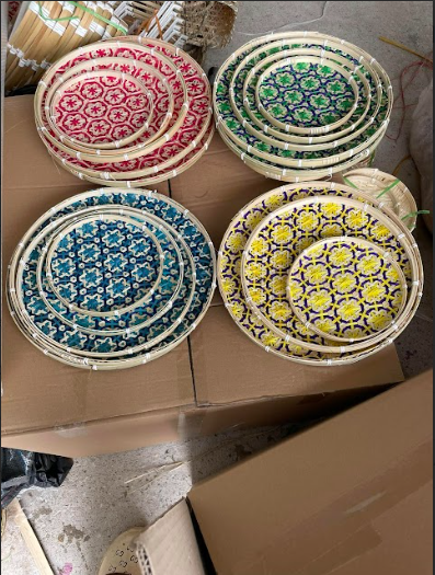 Handwoven basket tray made from natural materials for home decoration and storage use