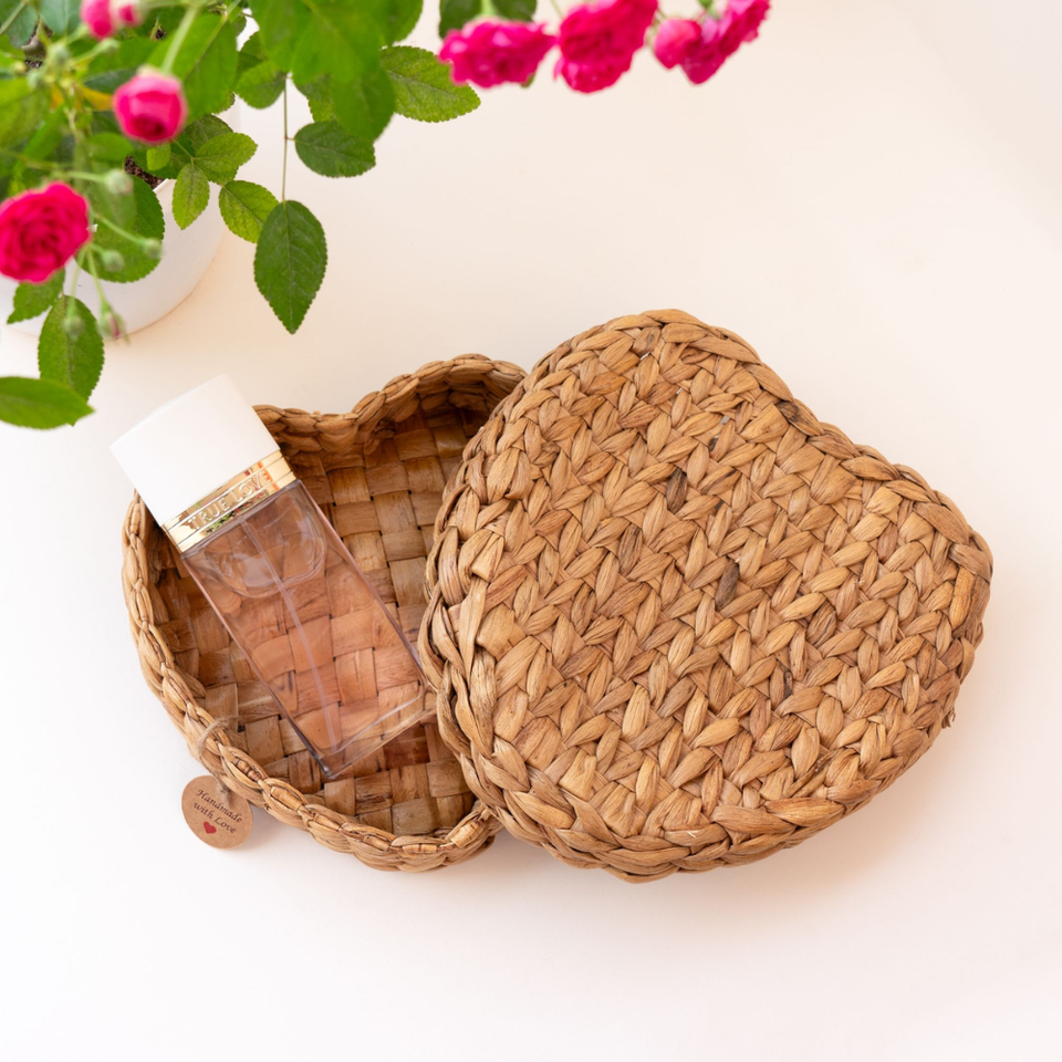Handwoven eco-friendly water hyacinth heart baskets for gift packing with lid Valentine boxes from Vietnam cheap price