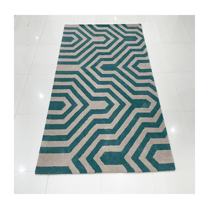 Handwoven in New Zealand Wool Green Beige High Traffic Rug Customized in Any Color Design Size Fireproof Environment Friendly